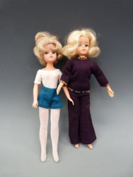 Six dolls, including two Sindy dolls, bisque jointed baby marked 'ABW', French celluloid boy doll marked '& Depose', Polish wooden doll and another