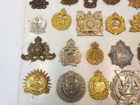 A collection of Canadian military badges including some rarities, 171st Quebec Rifles Overseas Battalion, Prince Albert Volunteers, 53rd Overseas Field Battery, Toronto etc
