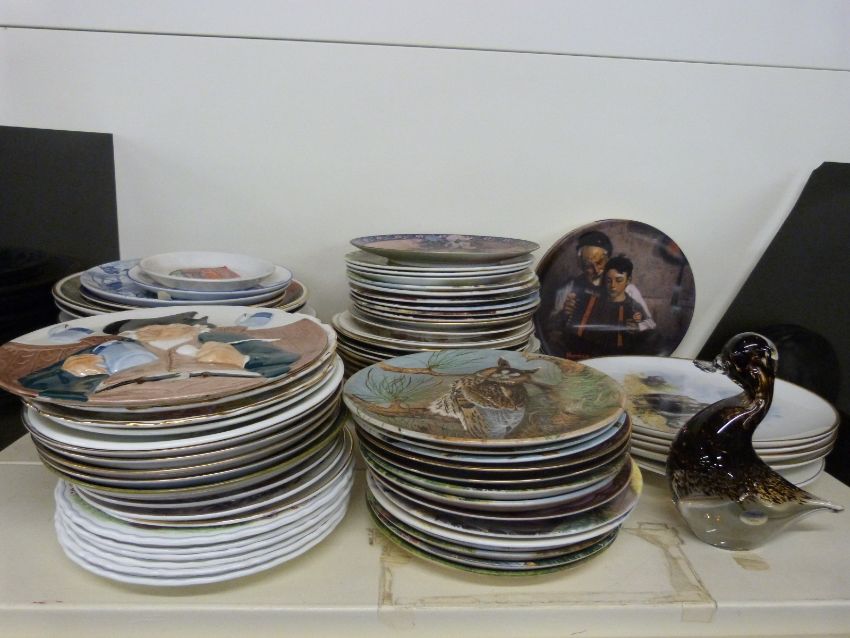 A large quantity of collectors plates including art subjects David Shepherd and Norman Rockwell as well as animals, floral and landscapes