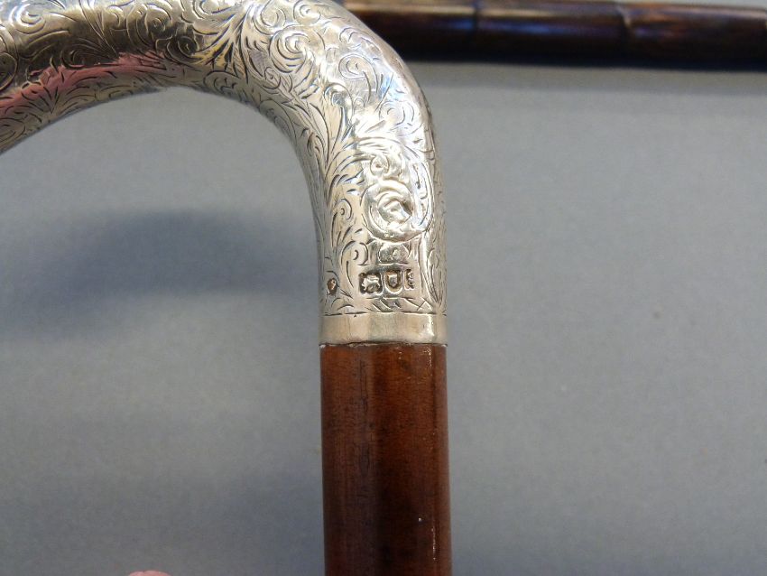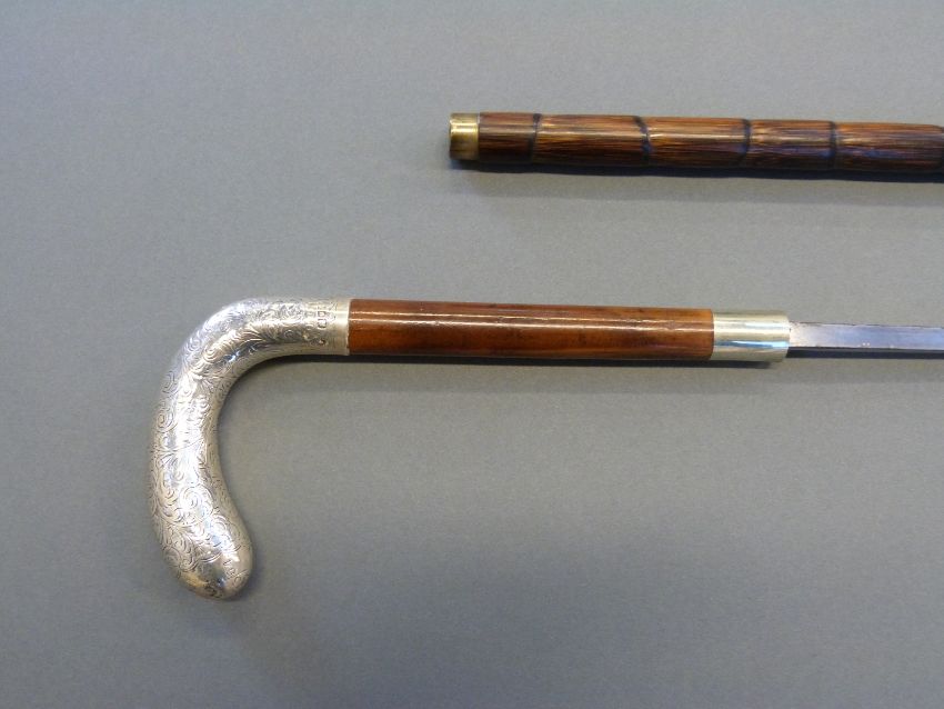 A hallmarked silver, malacca and bamboo swordstick, the handle London 1902 maker Henry Tracy and Sons, blade length 64cm