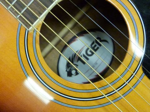 Tiger electric / acoustic guitar with classical style body and six steel strings, model no ACG4-SB, complete with stand, tuner, soft carry case and beginner's book