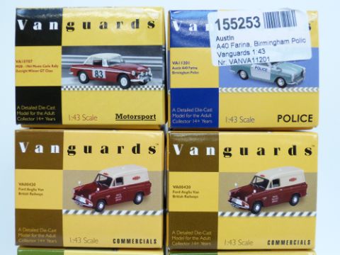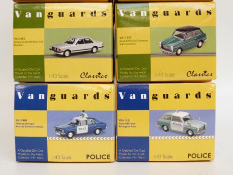 Eight Vanguards diecast model cars and vans including Police, Classics, Commercials etc, all in original boxes