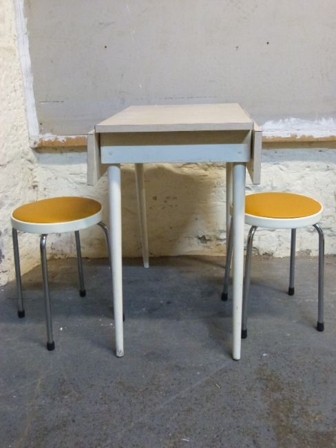 A retro Formica kitchen table with drop leaves