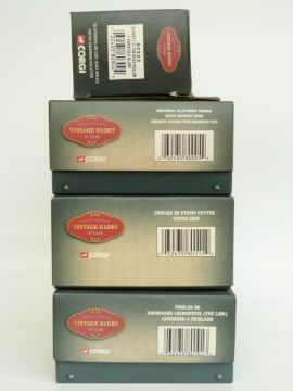 Four Corgi Vintage Glory of Steam 1:50 scale limited edition diecast model steam vehicles Anderton & Rowland Fowler B6 Showmans Locomotive (The Lion) 80101, Fowler B6 Stump Cutter 'Super Lion' 80111, Cement Marketing Company Ltd Sentinal Platform Wagon 80005 and Consuelo Allan Garrett 10 Ton Road Roller 80302, all in original boxes