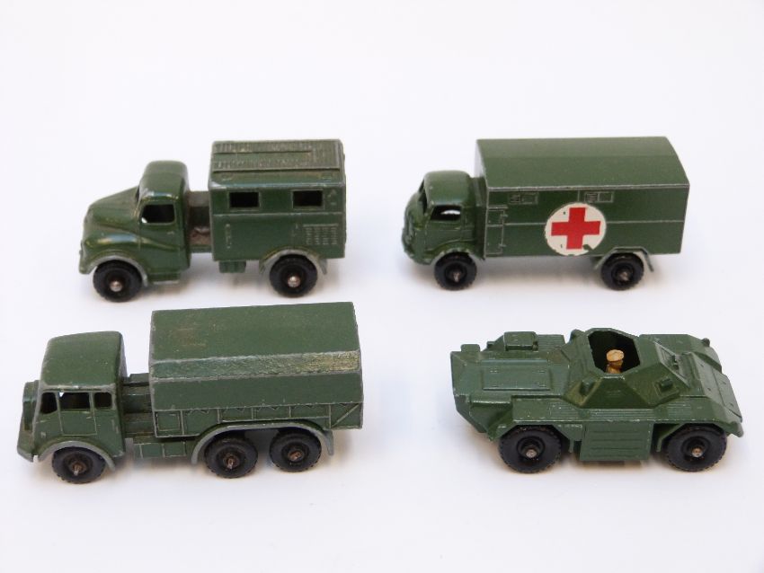 Twenty-four Matchbox Lesney 1-75 series diecast model military vehicles including Ford 3-Ton 4x4, Scammell Breakdown Truck, Saracen Personnel Carrier etc