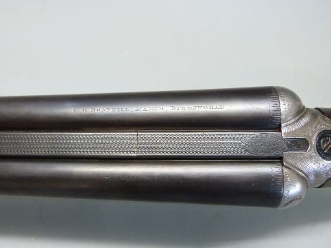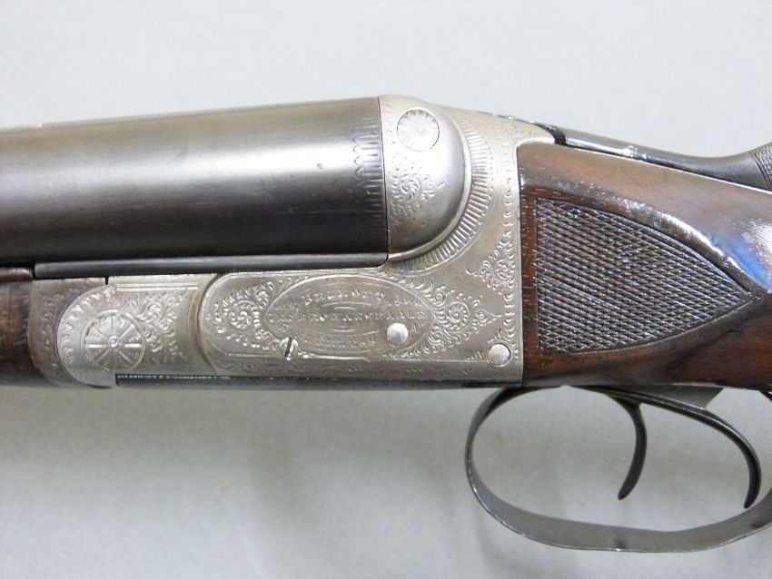 Belmont 'Interchangeable Hammerless' 12 bore side by side ejector shotgun with named and engraved locks, chequered semi-pistol grip and horn tipped forend, double trigger, engraved trigger guard, top plate, top lever and underside, tear drop and vacant shield shaped cartouche to the underside of the stock, and unchoked 30.25 inch barrels engraved 'C.G. Bonehill Maker Birmingham Special Steel', overall length 118cm, length of pull 36cm, serial number 1115. PLEASE NOTE THAT A VALID RELEVANT FIREARMS/SHOTGUN CERTIFICATE IS REQUIRED TO HANDLE/PURCHASE THIS ITEM.