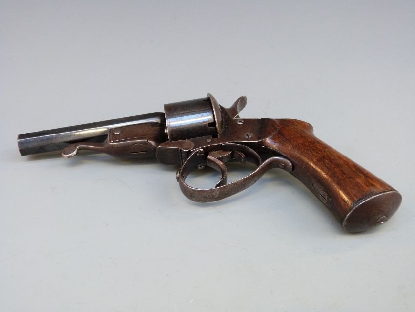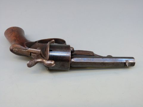 Javelle System 9mm six shot pin fire revolver with 3.5 inch octagonal barrel named F Berger St Entienne and shaped mahogany grip, overall length 23cm