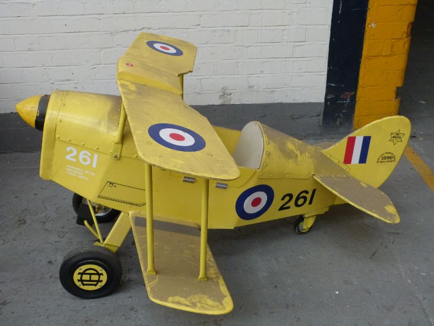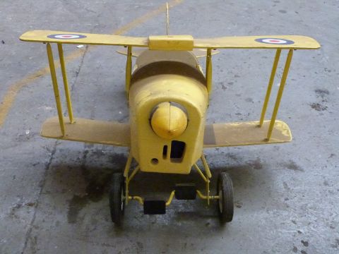 A child's pedal car in the form of a vintage biplane