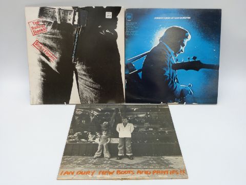 A case of mixed albums including The Beatles Sgt Pepper and Abbey Road, George Harrison All Things Must Pass and The Monkees