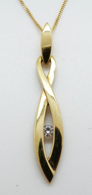 A 9ct gold necklace set with a cubic zirconia, 3.4g