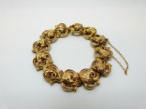 A late Victorian yellow metal bracelet in Art Nouveau design, each link depicting a daffodil, 15g