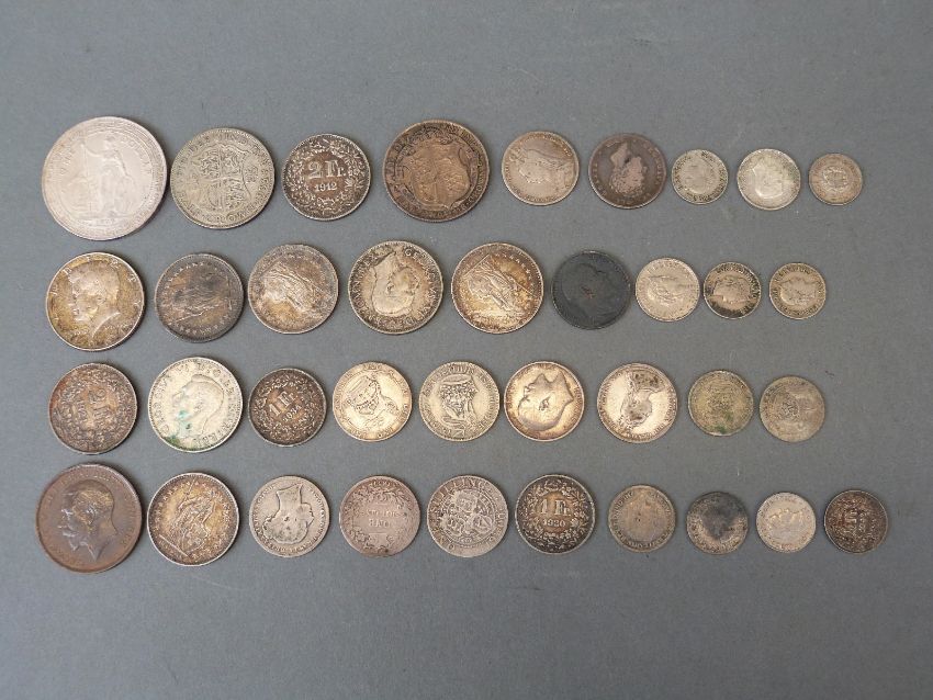 A collection of largely pre 1920 silver coinage including overseas, 19thC French, Austrian etc., approximately 200g