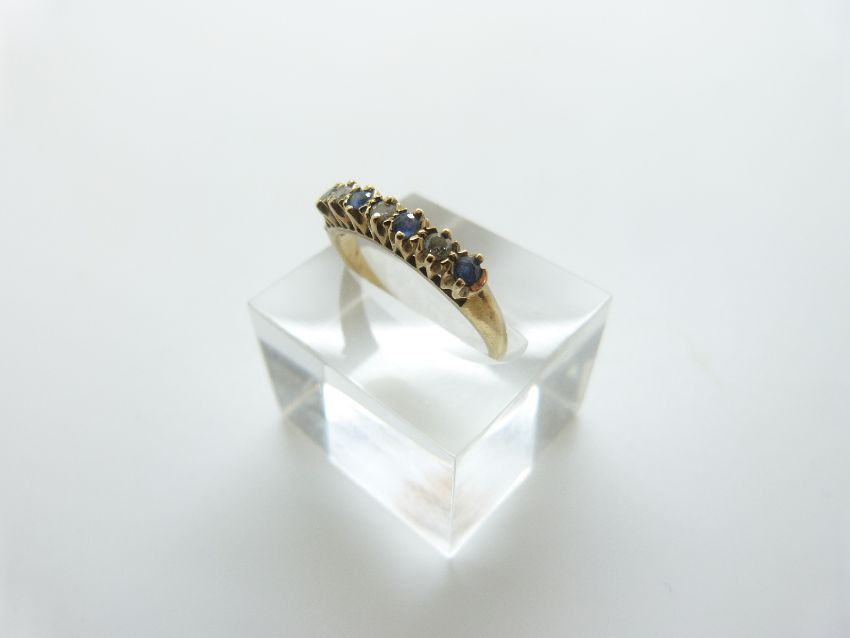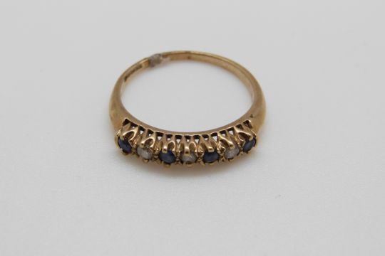 A 9ct gold ring set with diamonds and sapphires, size P/Q, 2.19g