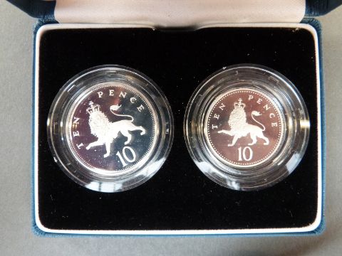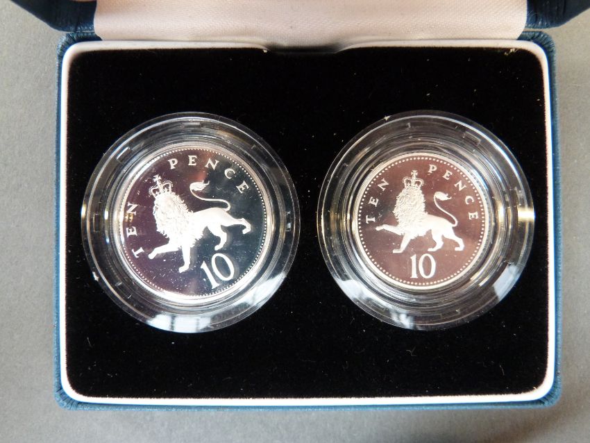 A 1990 Royal Mint UK silver proof crown for the Queen Mother's 90th birthday, together with a 1992 silver proof ten pence two coin set, with certificates
