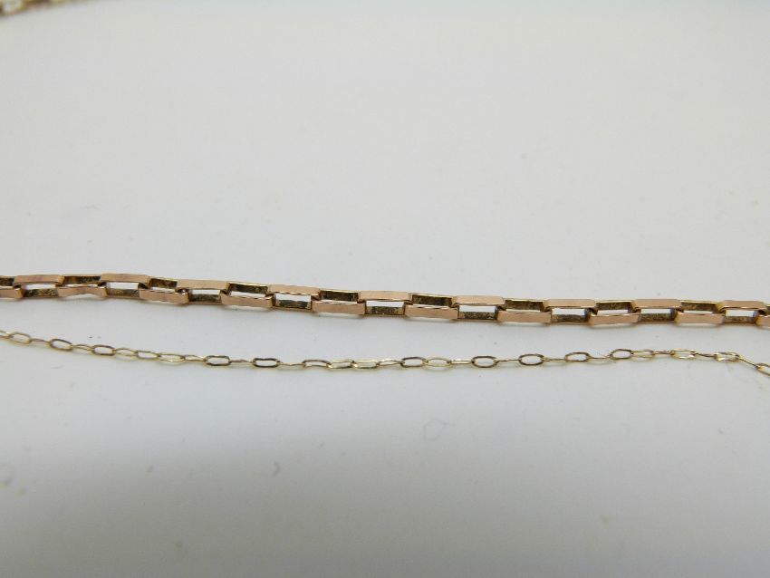 Two 9ct gold necklaces, one made up of rectangular links, 4.8g