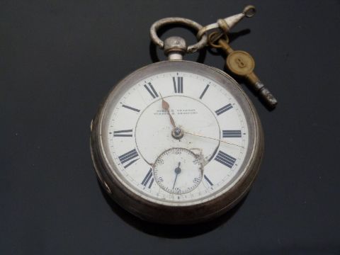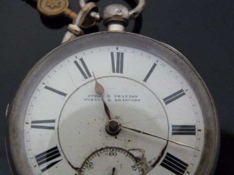 Stead & Pearson of Wibsey & Bradford hallmarked silver gentleman's pocket watch with fusee movement, Roman numerals, inset subsidiary dial, gold hands and white enamel face, marked 128248 to case and movement, Chester 1895, case diameter 55mm.