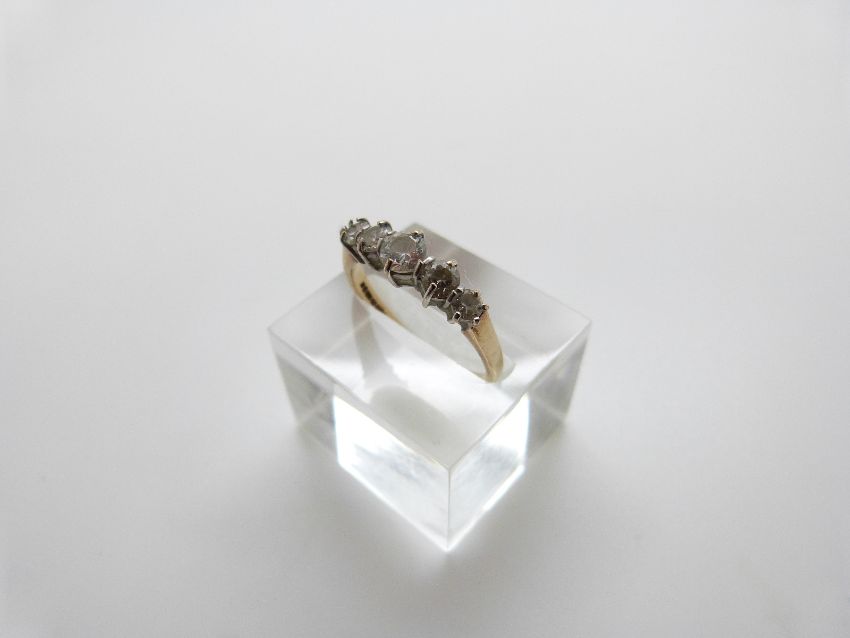A 9ct gold ring set with five graduated cubic zirconia, size Q, 2.37g