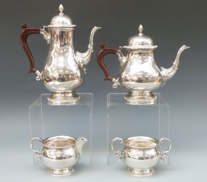 A modern hallmarked silver four piece teaset, Birmingham 1968, maker Baxter Ellis Silver Co., height of coffee pot 24cm, weight 1630g all in