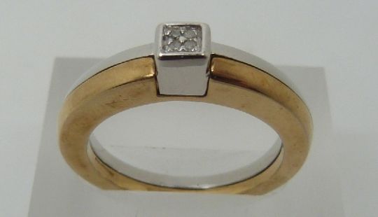 An 9ct bi-coloured gold ring set with four diamonds (size N)