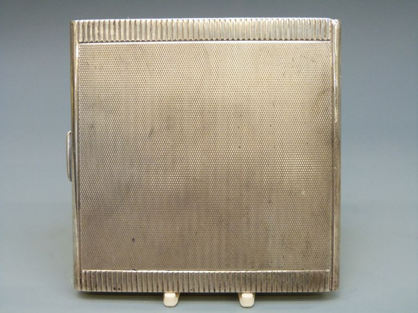 A white metal Art Deco style cigarette case marked sterling 925 JF, width 9cm, 140g