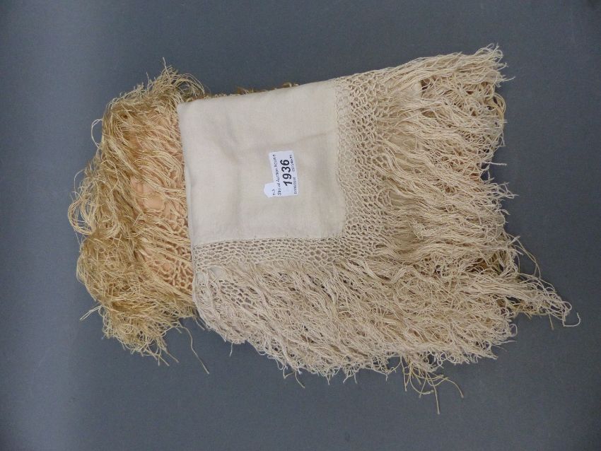 Two silk fringed squares, one ivory and one peach