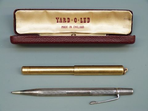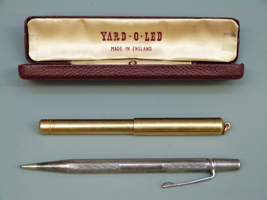A gold plated 'Swan Pen' by Mabie Todd and Co, New York and a hallmarked silver Yard-o-Led pencil in box