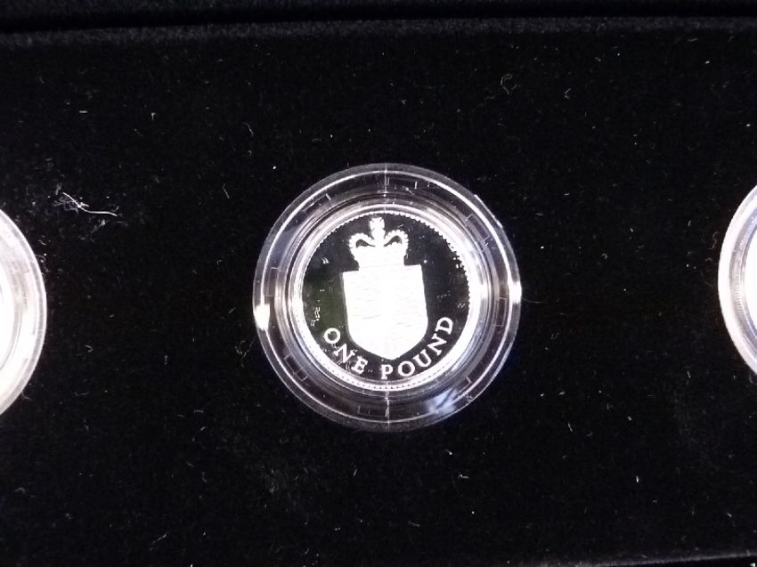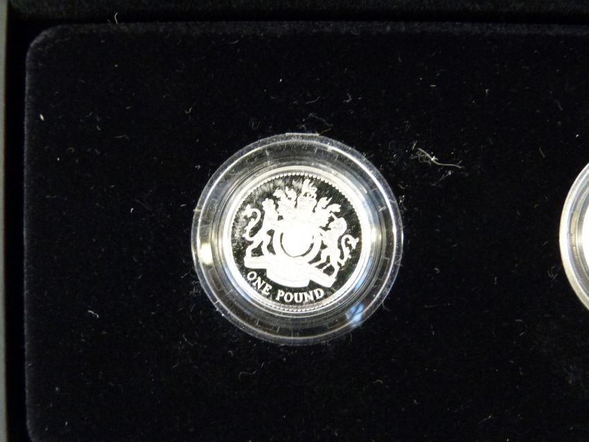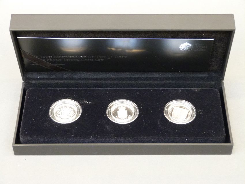A cased 30th Anniversary of the £1 coin silver proof three coin set, limited edition 3500 with certificate