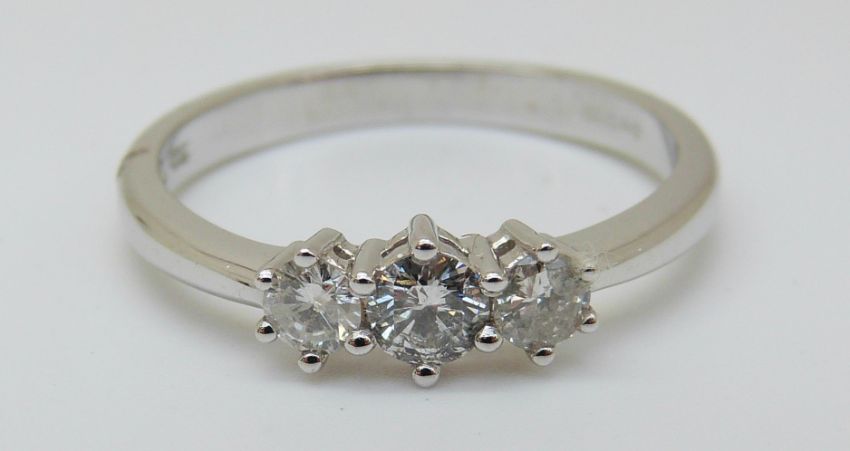 An 18ct white gold ring set with three diamonds totalling approximately 0.5ct (size S)