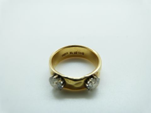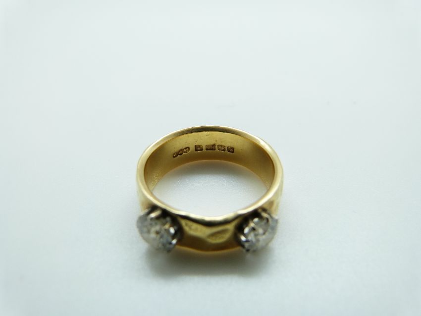 An 18ct gold ring set with two diamonds each approximately 0.6ct, size O, 8.23g