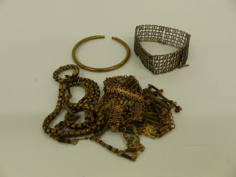 A collection of earrings to include moonstone, pearl and agate, together with a bangle, Indian bracelet and early glass beads