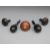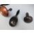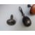Two turned and carved Irish bogwood sewing/darning mushrooms two ebony darning eggs, one with white metal mounts and ivory inlaid example with wrythen knop