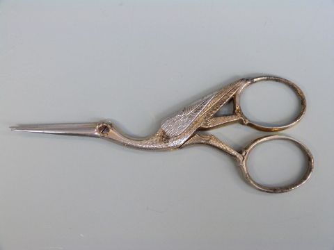 A yellow metal F.Baker & Son propelling pencil marked 9ct and also stamped Rd No.565713, length 11.5cm, weight 25.4g all in, a rolled gold propelling pencil and two sets of scissors, one formed as a stork