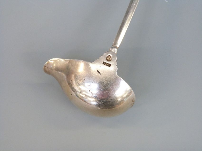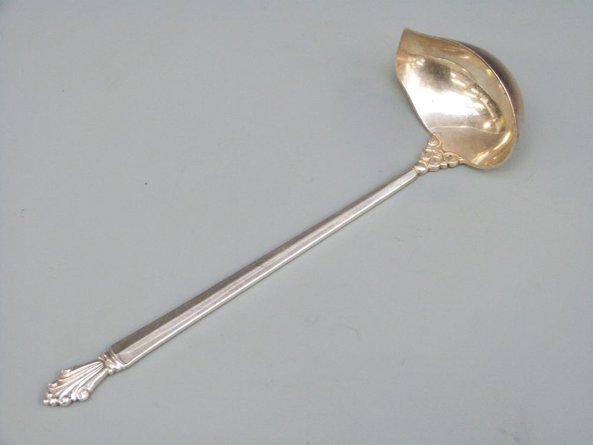 A Georg Jensen hallmarked silver sauce ladle with GI and 925.S marks and also import marks for London 1931, length 15.5cm, weight 35g