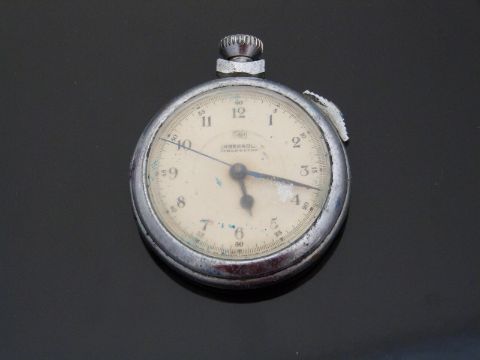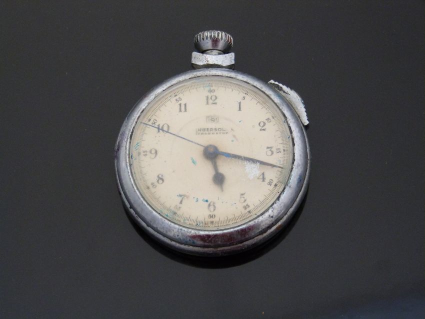 A white metal half hunter pocket watch with keyless wind movement and white enamel dial with Roman numerals and subsidiary seconds dial, marked to inner cover Bright & Sons Scarborough, an Ingersoll chronostop, Sekonda stop watch and a pocket voltmeter