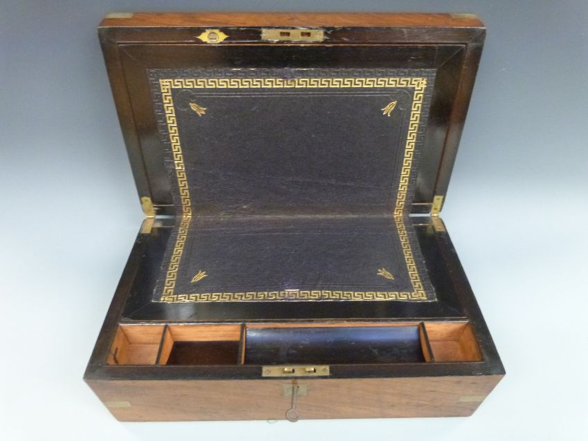 A 19thC inlaid and brass bound walnut writing slope with fitted interior, width 40cm