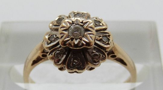 A 9ct gold ring set with diamonds, size J, 2.07g