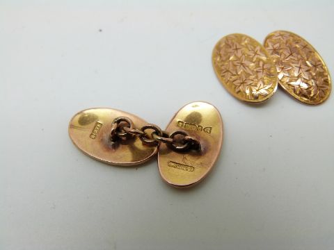 A pair of 9ct gold cufflinks with engraved ivy decoration, Chester 1905