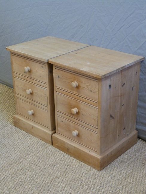 A pair of pine three drawer bedside cabinets, W40 x D40 x H60cm