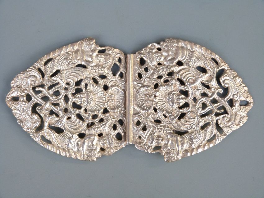 A hallmarked silver buckle relief decorated with mermaid putti, Birmingham 1901, weight 60g, 6.5 x 6cm