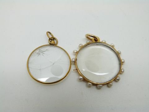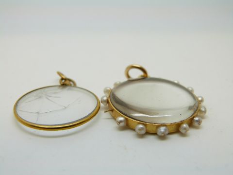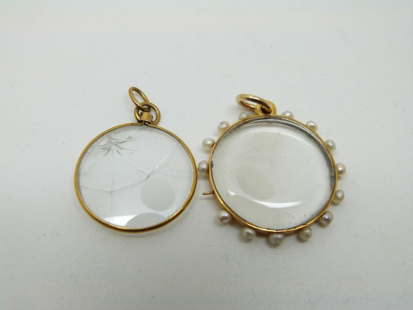 A Victorian 15ct gold locket set with pearls and another yellow metal locket