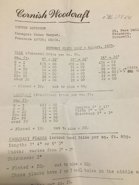 Approximately 80 cubic feet of Burmese teak in various lengths and widths including 17ft, 8ft etc. The lot includes a whole planked trunk. Purchased in 1979 from Cornish Woodcraft to complete the decking on the next lot. See photographs for details of original receipt