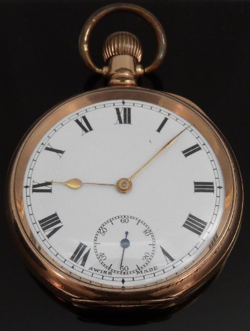 Thomas Russell & Son, Liverpool, rolled gold plated pocket watch with keyless wind movement, the white metal dial with Roman numerals and subsidiary seconds dial