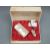 A boxed Ronson lighter set with tiled mother of pearl decoration and matching cigarette case, unused, in original box