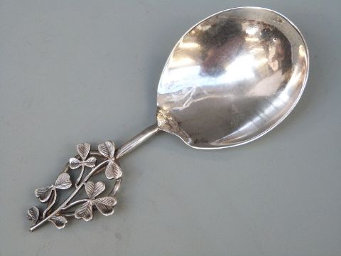 A Victorian hallmarked silver caddy spoon with clover leaf handle, Birmingham 1894 maker M. Ld. length 9.5cm, weight 17g