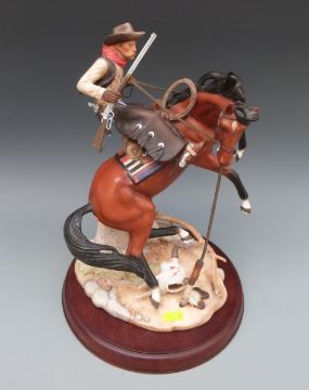 Franklin Mint mounted Cowboy figure on plinth 'Sudden Warning'