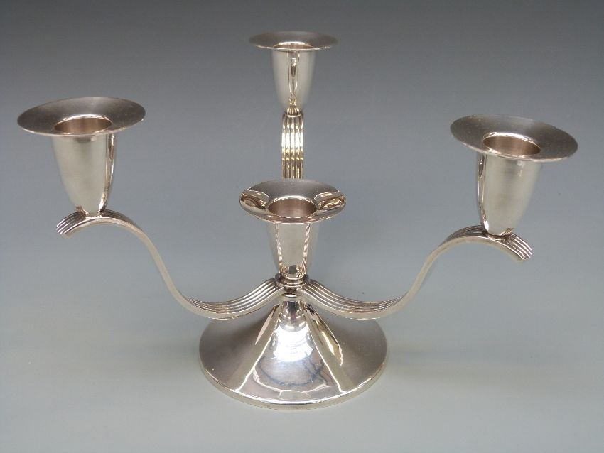 An A E Jones Victorian hallmarked silver Arts & Crafts candelabra with reeded supports, Birmingham 1899 and marked 1387, height 12.5cm, weight 369g
