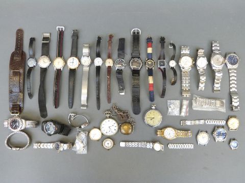 Approximately 32 watches including Rotary, Ingersoll, Timex, Lorus, Accurist, nickel or similar, cased pocket watch