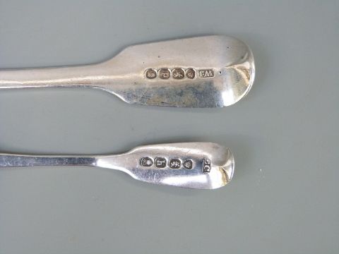 A hallmarked silver Fiddle pattern ladle, London 1823, maker Clement Cheese and a hallmarked silver salt spoon, London 1830, maker William Johnson, weight both 62g