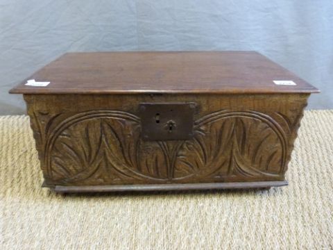 An 18thC or 19thC carved oak bible box, W56 x D32 x H27cm