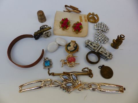 A large quantity of costume jewellery to include Victorian cameo brooch, enamel brooch, insect brooches, Victorian heart locket, watches etc